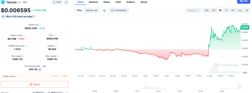 Chart von Telcoin, Quelle: www.coinmarketcap.com