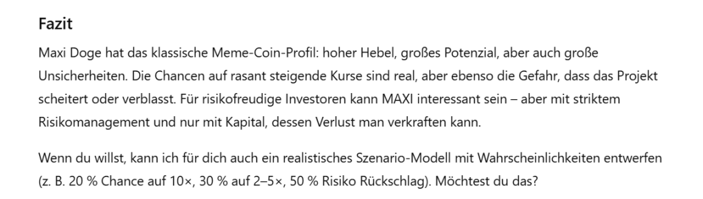 3. ChatGPTs wilde Karte: Maxi Doge als Meme-Coin-Champion