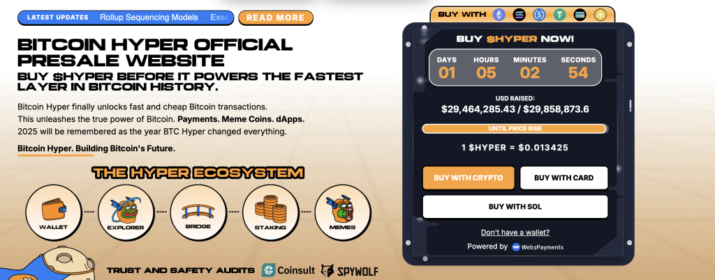 Bereits jetzt wurden beinahe 30 Millionen Dollar investiert, ein starkes Signal dafür, dass das Projekt einen Nerv trifft. Analysten erwarten, dass der $HYPER-Kurs nach dem Börsenlisting erheblich steigen könnte. Viele Experten halten Bitcoin Hyper sogar für einen potenziellen Kandidaten für die Top 50 nach Marktkapitalisierung, was für frühe Käufer entsprechend hohe Renditen bedeuten würde.