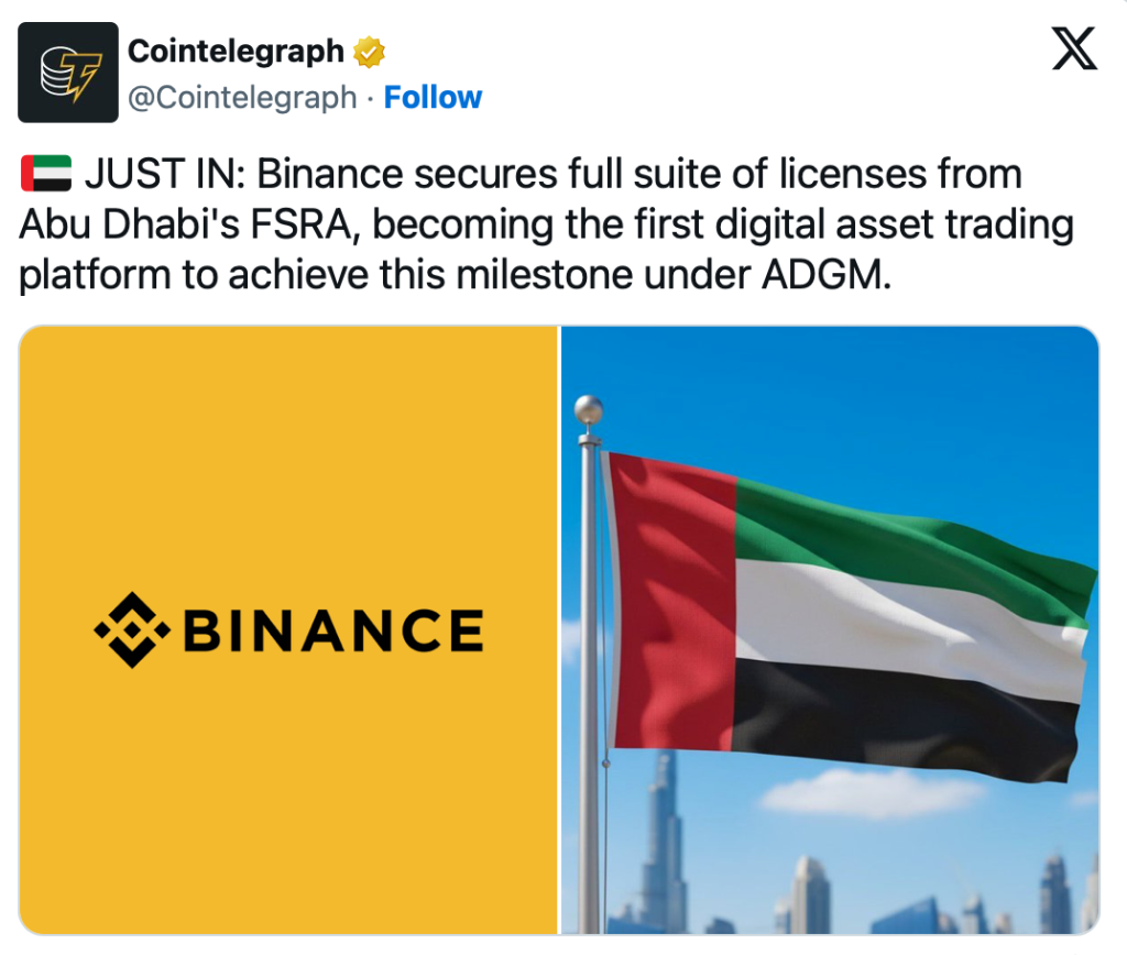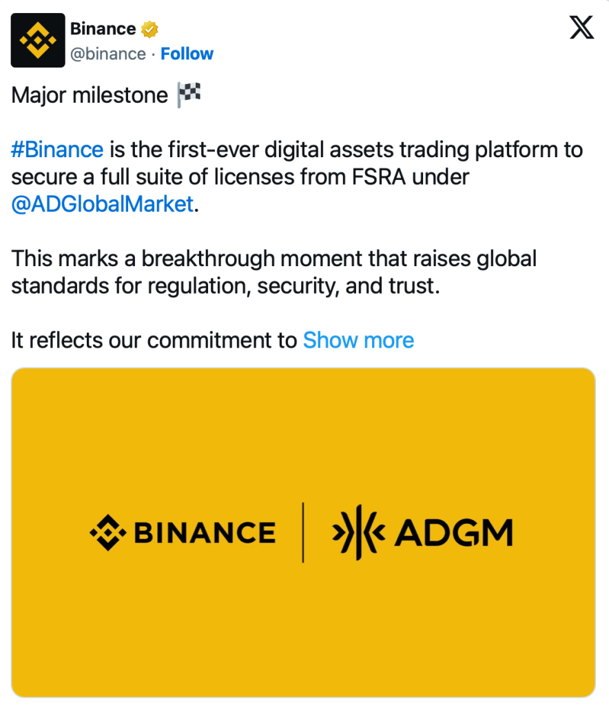 Abu Dhabi setzt globalen Standard: Binance erhält umfassende FSRA-Lizenzen