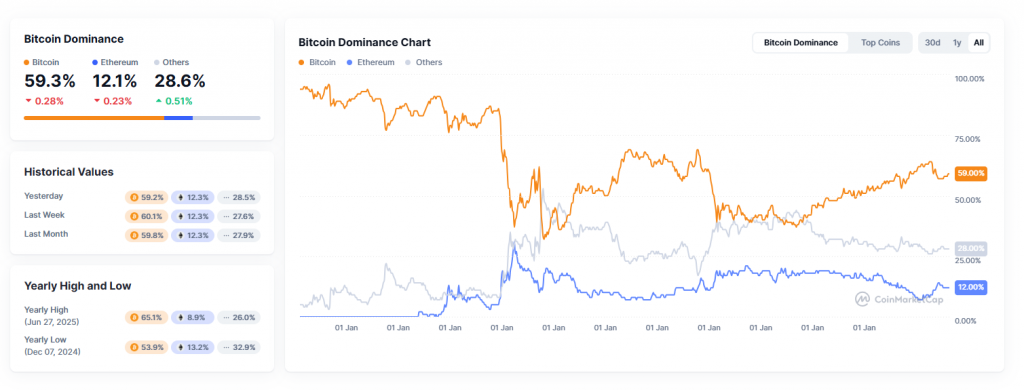 Besonders relevant bleibt die Marke bei 58,3 Prozent, die schon mehrfach als Wendepunkt in vergangenen Marktphasen gedient hat. Eine echte Altcoin-Season entsteht erst, wenn Bitcoin an Dominanz verliert und Kapital verstärkt in kleinere Projekte fließt.