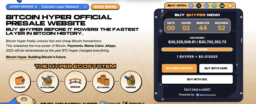 Sollte sich eine neue Altcoin Season tatsächlich entfalten, profitieren erfahrungsgemäß vor allem junge Infrastrukturprojekte mit klarem Nutzen am stärksten. Bitcoin Hyper ($HYPER) positioniert sich als Layer-2-Lösung, die Bitcoin endlich für DeFi, dezentrale Börsen und komplexe Anwendungen öffnet – und damit enormes ungenutztes Potenzial freisetzt.