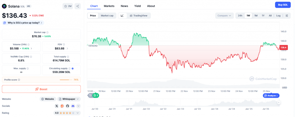 Cardano kämpft rund um die Oberkante seiner Flagge. Ein Rücksetzer in den Bereich 0,418 bis 0,42 US-Dollar bleibt normal. Erst unter 0,398 US-Dollar wird es heikler. Solana zeigt momentan Stärke und hat seinen Kanal nach oben verlassen. Der entscheidende Bereich liegt jedoch klar zwischen 142 und 147,5 US-Dollar. Ohne Ausbruch darüber bleibt jeder Anstieg anfällig. Unter 129,7 US-Dollar würde die Struktur erneut kippen. Ein weiteres Zwischenhoch wirkt trotzdem möglich, da die Bewegung noch sauber läuft.