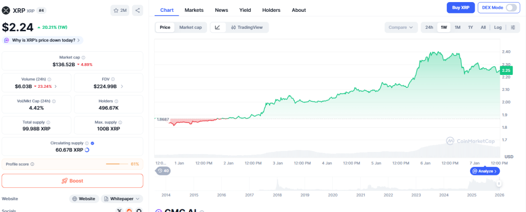 XRP bei 2,40 US-Dollar abgeprallt, Quelle: https://coinmarketcap.com