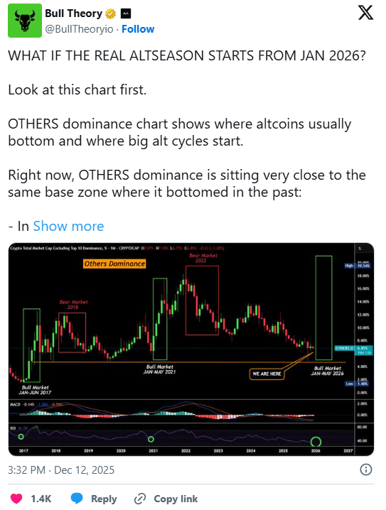 Analyst prognostiziert Start der Altcoin Season im Januar 2026