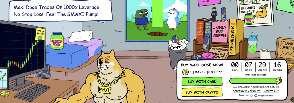 Der $MAXI-Token befindet sich aktuell noch im Vorverkauf und hat in dieser frühen Phase bereits mehr als vier Millionen US-Dollar eingesammelt. Während Dogecoin heute mit einer Marktkapitalisierung im zweistelligen Milliardenbereich bewertet ist, steht Maxi Doge noch ganz am Anfang. Selbst eine Bewertung von einer Milliarde US-Dollar, verglichen mit Dogecoin ein kleiner Bruchteil, würde für frühe Investoren bereits ein Vielfaches ihres Einsatzes bedeuten.
