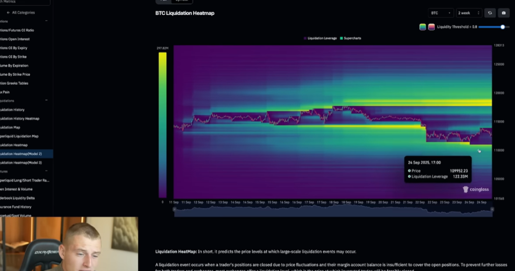 Experte mit der Bitcoin Liquitation Heatmap, Quelle: https://www.youtube.com/