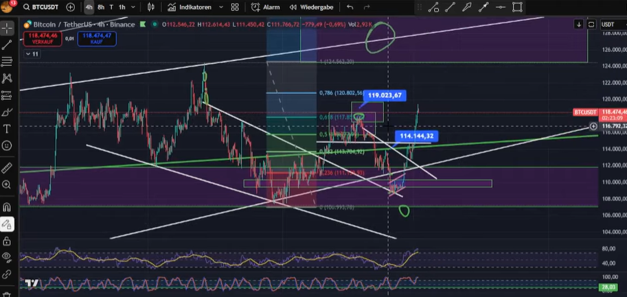 Mario von “Krypto Trading und Investing” sieht einen Anlauf auf die Marke von 124k, Quelle: https://www.youtube.com/