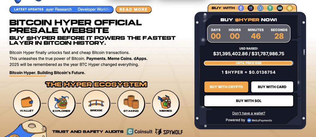 Schon jetzt ist die Nachfrage extrem hoch, sodass inzwischen über 31 Millionen Dollar investiert wurden. Analysten gehen daher davon aus, dass der $HYPER-Kurs nach dem Launch schnell explodieren könnte, wobei einige einen Anstieg um das 50-fache für möglich halten, da das Projekt schon vor dem Launch extrem viel Aufsehen erregt und einen der erfolgreichsten Krypto-Presales der letzten Jahre hinlegt.