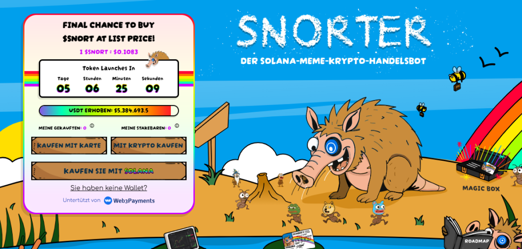 Anders sehen die Möglichkeiten beim neuen Snorter Token aus. Mit dem Launch am nächsten Montag stehen die Chancen gut, dass hier schnelle Kursbewegungen erreicht werden können. Gerade Memecoins sind nach dem Start extrem volatil, der starke Presale ist ein Zeichen, dass hier viel Potenzial lauern könnte.