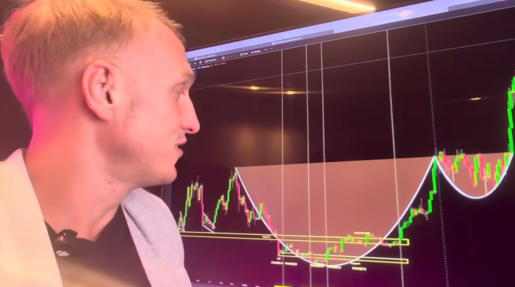Chris von MMCrypto sorgte mit einer überraschenden Entdeckung für Aufsehen. In einem ältesteren Chart fand er eine Prognose, die sich nun fast punktgenau erfüllt hat. Der Chart stammt von Bitstamp und wurde laut ihm bereits im November 2023 erstellt, damals hatte er ein langfristiges Cup-and-Handle-Pattern eingezeichnet, das ein Kursziel bei 123.000 US-Dollar ergab. Genau an diesem Punkt prallte der Bitcoin zuletzt heftig nach unten ab.