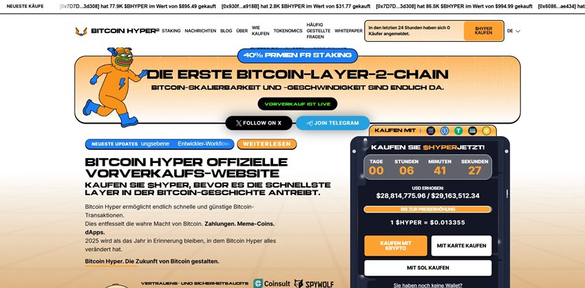 Bitcoin Hyper wird als Layer 2 Lösung auf Basis von Bitcoin positioniert. Ziel ist es, schnellere und günstigere Transaktionen auf einer eigenen Infrastruktur zu ermöglichen, die sich auf Bitcoin Sicherheit stützt. Marketingmaterial und Presale Berichte sprechen von einem sehr erfolgreichen Token Vorverkauf mit einem hohen eingesammelten Betrag und stellen HYPER als potentielles High Speed Netzwerk im Bitcoin Umfeld dar.