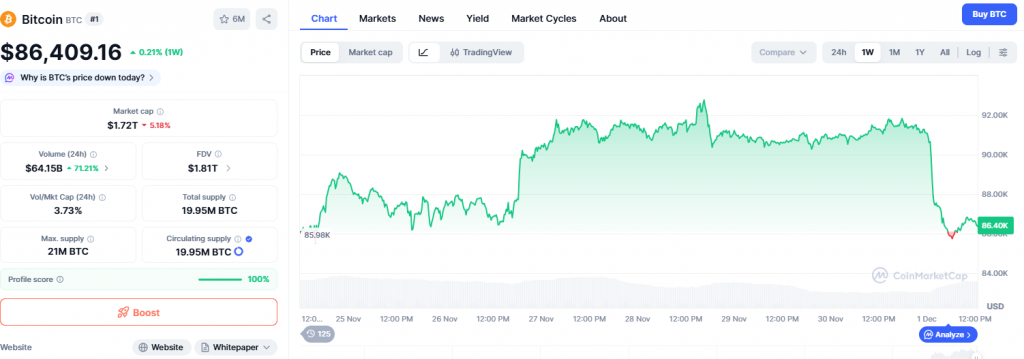 Bitcoin fällt unter 87.000 Dollar – 600 Millionen Dollar liquidiert