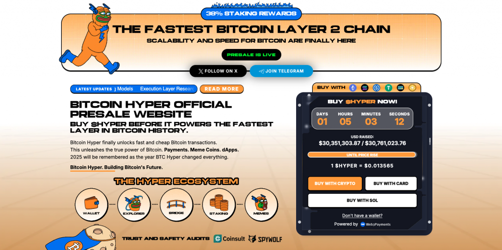 Der Presale von Bitcoin Hyper hat sich innerhalb kurzer Zeit zu einem der größten Fundraising-Erfolge des Jahres entwickelt. Bereits über 30 Millionen US-Dollar wurden eingesammelt. Der $HYPER-Token bildet das wirtschaftliche Fundament des Netzwerks und wird für Gebühren, Staking und Governance benötigt. Viele Investoren sehen in dem Projekt eine Möglichkeit, frühzeitig an der nächsten Entwicklungsstufe des Bitcoin-Ökosystems teilzuhaben.