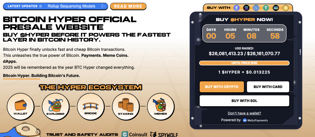 Der $HYPER-Token bildet das Zentrum des neuen Ökosystems. Er wird für Transaktionen, Governance und Stakingverwendet. Derzeit läuft der Presale, in dem bereits über 26 Millionen US-Dollar eingesammelt wurden – ein deutlicher Hinweis auf das große Vertrauen der Community.