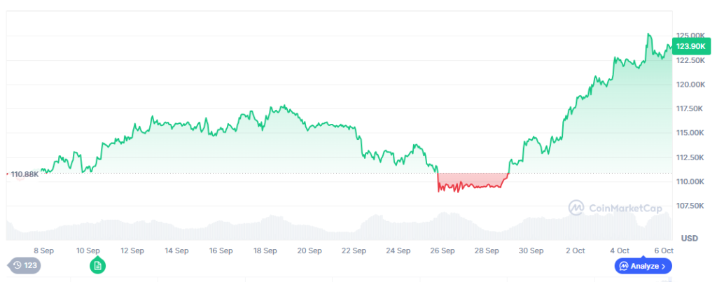 Bitcoin mit Rally anfang Oktober, Quelle: www.coinmarketcap.com