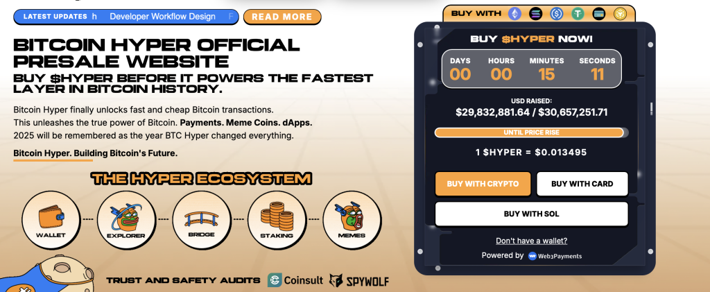 Aktuell befindet sich $HYPER noch im Vorverkauf, wobei bereits rund 30 Millionen Dollar investiert wurden. Viele Analysten sehen darin ein Zeichen, dass Anleger nicht nur auf einen steigenden Bitcoin-Kurs setzen, sondern auch auf Infrastruktur, die das Bitcoin-Ökosystem funktional erweitert. Sollte sich diese Entwicklung fortsetzen, könnte Bitcoin Hyper zu den Projekten gehören, die besonders stark von einer späteren Marktphase profitieren.