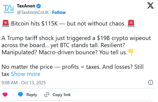Bitcoin bleibt ein Nachrichtenmacher und ist derzeit etwa 115.000 Dollar wert, nachdem es eine der wildesten Wochen in Erinnerung überstanden hat. Der Kryptomarkt fiel um 19 Milliarden Dollar aufgrund eines unvorhergesehenen Zollschocks durch Trump, der die globale Investorenstimmung erschütterte. Trotz dieser Turbulenzen zeigt Bitcoin eine bemerkenswerte Widerstandsfähigkeit und löst Diskussionen über die Zukunft der führenden Kryptowährung aus.
