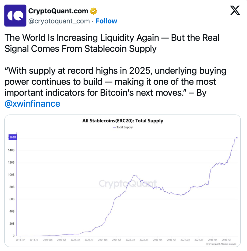 In geldpolitischen Straffungsphasen löste sich Bitcoin sogar deutlich vom M2-Trend. Daher betonen Analysten zunehmend die Bedeutung von Stablecoins – denn hier fließt Kapital direkt in den Kryptomarkt.