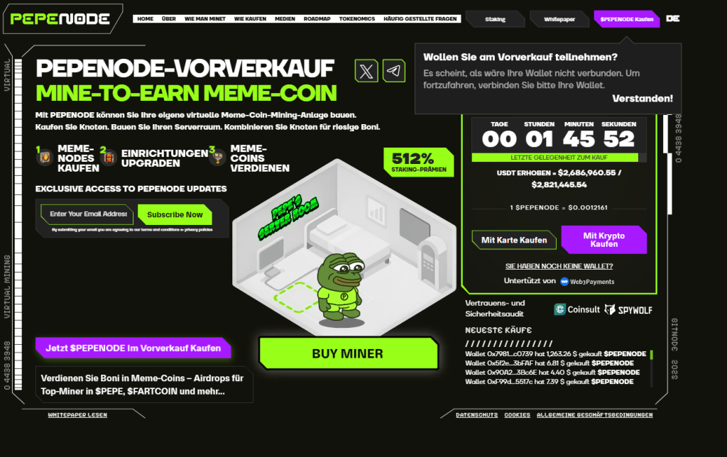 PepeNode ist ein Gaming-Coin, der Meme-Kultur mit strategischem Gameplay kombiniert und aktuell im ICO für Aufmerksamkeit sorgt. Das Projekt verbindet Meme-Kultur mit einem Mining-basierten Web3-Game und setzt auf strategisches Gameplay statt einfacher Klickmechaniken.