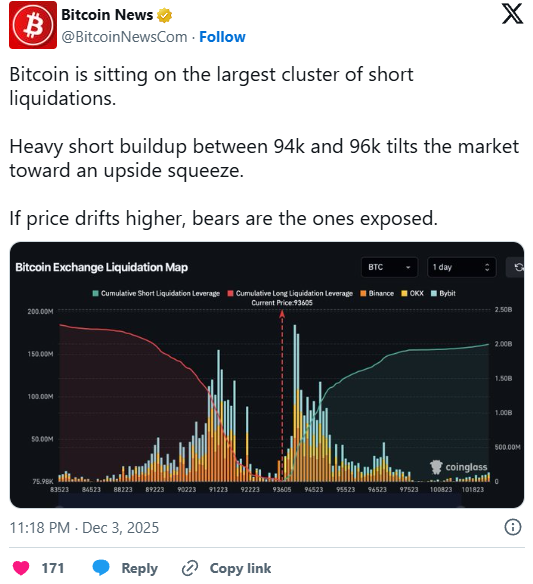 Der jüngste Kursrückgang hat dazu geführt, dass sich massive Short-Positionen im Markt aufgebaut haben. Besonders im Preisbereich zwischen 94.000 und 96.000 Dollar haben sich Wetten auf fallende Kurse konzentriert. Diese Zone könnte für den nächsten großen Kursausschlag entscheidend werden.