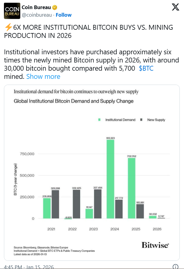 Die aktuellen Zahlen zeigen ein klares Ungleichgewicht zwischen Angebot und Nachfrage. Institutionelle Investoren haben im laufenden Jahr rund 30.000 Bitcoin gekauft, während im gleichen Zeitraum lediglich etwa 5.700 neue Coins durch Mining entstanden sind. Damit übersteigt die Nachfrage das frische Angebot um ein Vielfaches.