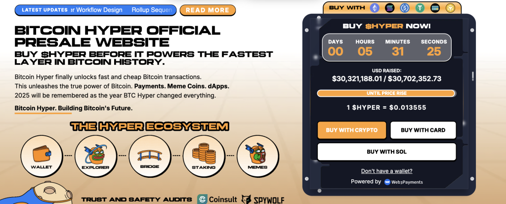Technologisch kombiniert Bitcoin Hyper die Sicherheitsstruktur von Bitcoin mit einer leistungsfähigen Ausführungsschicht auf Basis der Solana Virtual Machine. Dadurch sollen schnelle, günstige und komplexe Anwendungen möglich werden, ohne die Bitcoin Main Chain zu belasten. Genau dieser Ansatz spricht Investoren an, die nicht auf Narrative, sondern auf funktionale Erweiterungen des Bitcoin-Ökosystems setzen.