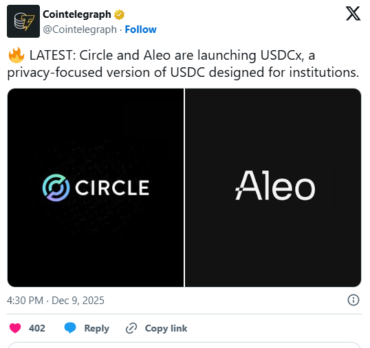 Circle lanciert datenschutzorientierten Stablecoin USDCx auf Aleo