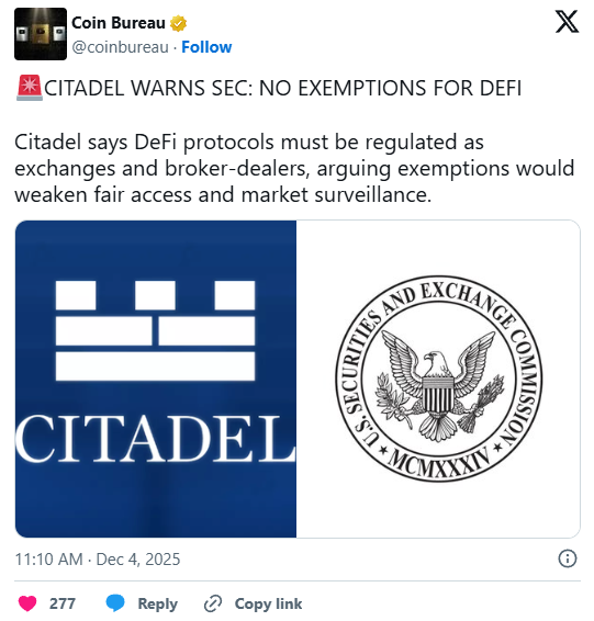 Citadel fordert strengere DeFi-Regulierung – Krypto-Branche befürchtet Innovationsbremse