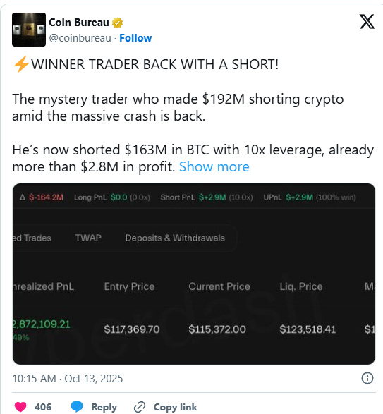 Der mysteriöse Händler nutzte Hyperliquid, eine leistungsstarke On-Chain-Derivatebörse, mit 10-fachem Hebel und erzielte exponentiellen Gewinn, als der Markt fiel. In der Community werden verschiedene Theorien diskutiert: von perfektem Makro-Timing über algorithmische Marktbeobachtung bis hin zu institutionellem Schattenhandel. Was auch immer zutrifft – der Händler lag zweimal goldrichtig, und die Wiederholung innerhalb von nur sieben Tagen deutet auf ein konsistentes System statt auf bloßes Glück hin.