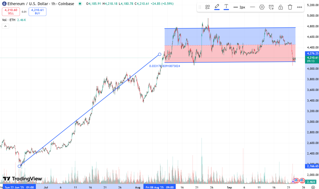 Kurzfristig ist vor allem der Bereich zwischen 4.085 und 4.100 US-Dollar wichtig. Hier liegen mehrere lokale Unterstützungen, die bereits mehrfach getestet wurden. Sollte Ethereum diese Zone halten, wäre eine technische Gegenbewegung nach oben denkbar. Bricht der Kurs darunter, droht jedoch ein weiteres Abrutschen. Für eine bullische Trendwende reicht ein bloßer Bounce nicht aus. Erst wenn Ethereum auf Vier-Stunden-Basis über 4.266 US-Dollar schließen kann, wäre das ein klares Signal für Stärke. Dann wären auch Ziele im Bereich von 4.400 bis 4.500 US-Dollar wieder erreichbar.