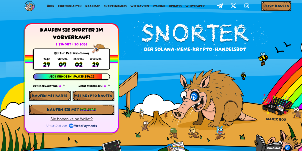 Insgesamt bleibt das Setup zweigeteilt: kurzfristig Chancen auf eine Erholung, mittelfristig aber das Risiko weiterer Rücksetzer. Ethereum muss beweisen, dass die Marke bei 4.000 US-Dollar mehr ist als nur eine kurzfristige Haltestelle im Abwärtstrend. Kein Wunder, dass in dieser Situation viele Anleger in Presale Projekte investieren, welche dann im üblicherweise bullischen Oktober launchen. Eines davon ist Snorter Token ($SNIORT), ein Telegram Trading Bot welcher am 20.10. sein Presaleende angekündigt hat.