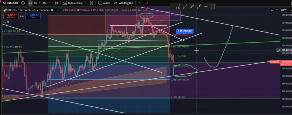 Wichtiger bereich bei 111.000 US-Dollar, Quelle: Analyse von Krypto Trading und Investing auf  https://www.youtube.com