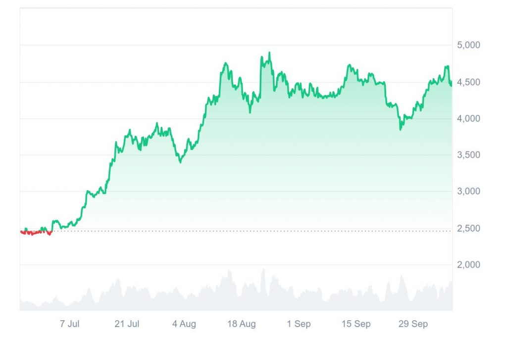 Ethereum erreicht neues Hoch – Kann ETH im Oktober die 5.000-Dollar-Marke knacken?