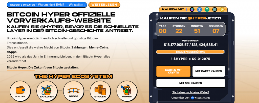 Die frühe Nachfrage bei einem Projekt signalisiert klar das Vertrauen vieler Investoren. Mit nahezu 20 Millionen US-Dollar im Presale hebt sich Bitcoin Hyper durch relative Stärke ab. Damit zählt das Projekt schon jetzt zu den erfolgreichsten Token-Verkäufen dieser Marktphase und deutet sein langfristiges Potenzial deutlich an.