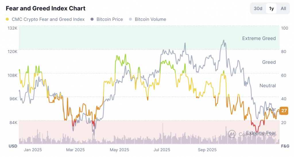 Viele Trader hatten offenbar auf eine technische Erholung gesetzt und wurden auf dem falschen Fuß erwischt. Die Folge ist zusätzlicher Verkaufsdruck, der kurzfristige Erholungen immer wieder ausbremst. Auch das allgemeine Marktsentiment bleibt angespannt. Der Fear-and-Greed-Index liegt mit einem Wert von 27 weiterhin im Panikbereich, wenngleich er sich von seinem jüngsten Extremwert bei 11 etwas erholt hat. Die Zinssenkung der US-Notenbank brachte bislang keine nachhaltige Stimmungswende, was zeigt, wie fragil das Vertrauen der Marktteilnehmer derzeit ist.