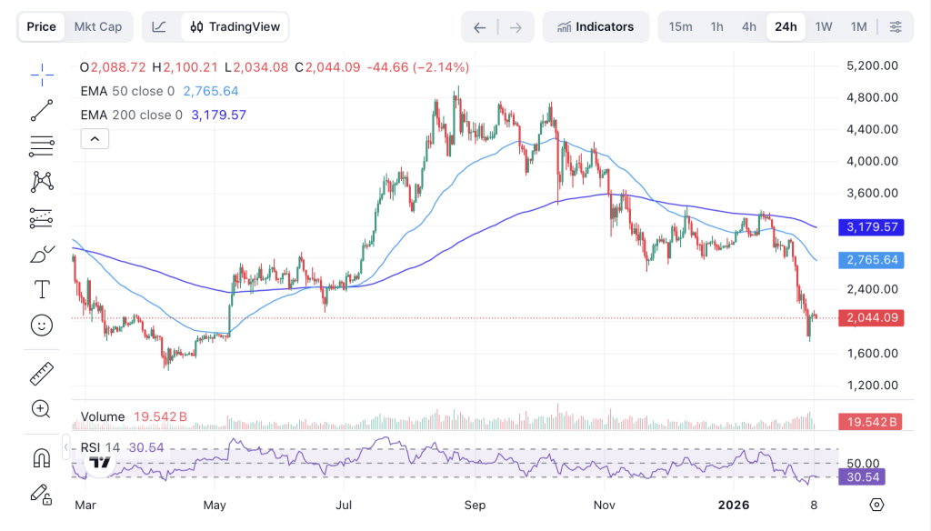 Am Kryptomarkt richtet sich der Blick derzeit fast ausschließlich auf fallende Kurse. Ethereum ist in den vergangenen Wochen deutlich unter Druck geraten und notiert aktuell im Bereich um 2.000 Dollar. Viele Anleger werten das als klares Schwächesignal. Doch wer nur auf den Kurs schaut, übersieht wichtige Entwicklungen im Hintergrund, die für die mittlere und lange Frist eine ganz andere Geschichte erzählen.