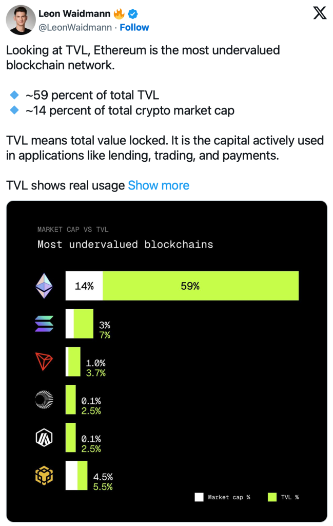 Ethereum nach TVL-Metriken massiv unterbewertet – Fundamentale Stärke trifft auf gedämpfte Bewertung