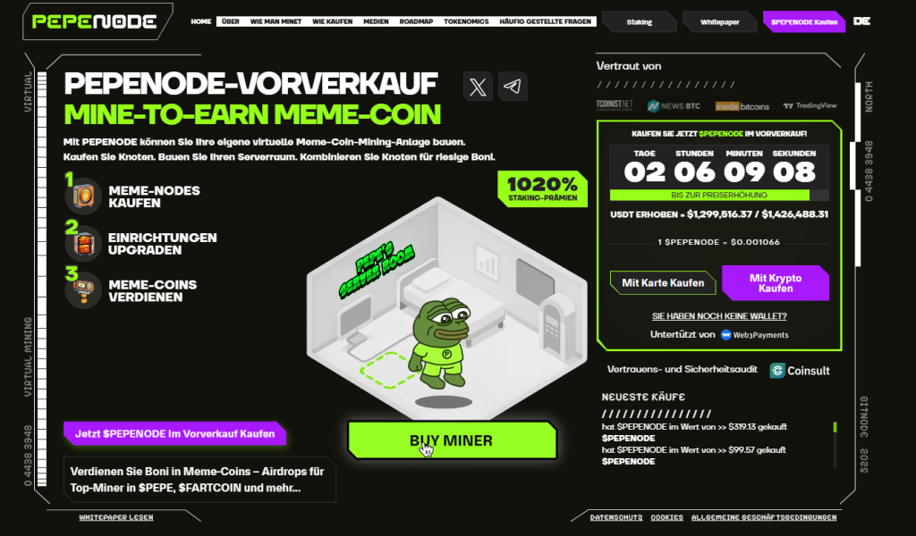 Mit diesem Mine-to-Earn-Prinzip löst PepeNode zwei Probleme: die hohen Einstiegskosten des klassischen Minings sowie die Passivität vieler Staking-Modelle. Statt teurer Hardware reicht ein Wallet, und statt Langeweile gibt es ein interaktives Spiel. Sollte das Konzept Anklang finden, könnte PepeNode den Grundstein für einen neuen Trend im Meme-Coin-Sektor legen und entsprechende Steigerungen in der Altcoin Season erreichen.