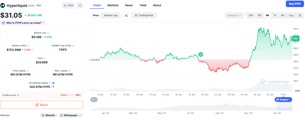 Hyperliquid Monatschart, Quelle: https://coinmarketcap.com/currencies/hyperliquid/