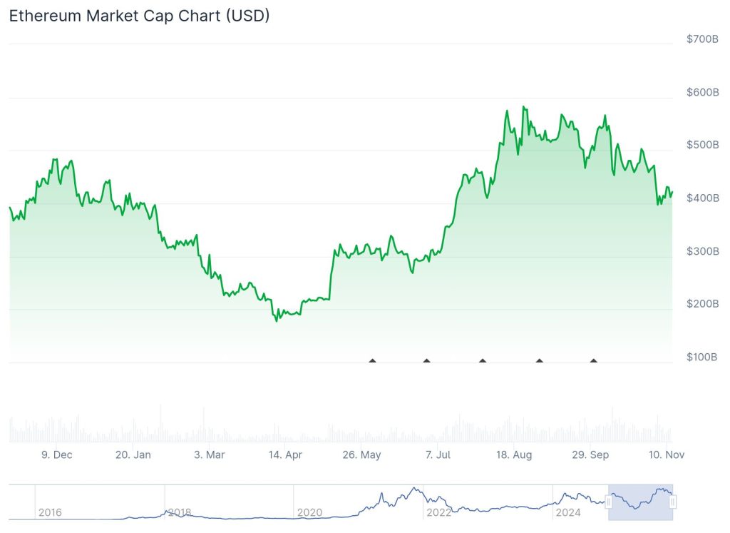 • Große Wallets akkumulieren weiter – ein Wal kaufte zuletzt über 400.000 ETH im Wert von 1,38 Milliarden US-Dollar.