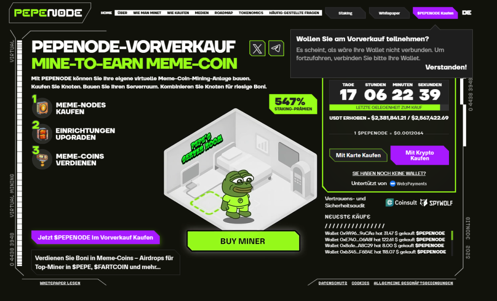Hier PepeNode Coins noch vor dem Listing kaufen.