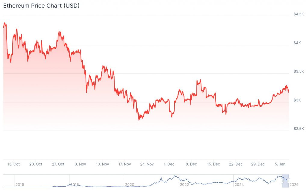 Auch der Kursverlauf passt zu diesem Gesamtbild. Nach dem deutlichen Rücksetzer im vierten Quartal 2025 konnte sich Ethereum in den vergangenen Wochen stabilisieren. Der Preis bewegt sich aktuell in einer Spanne um 3.150 bis 3.200 US-Dollar und zeigt eine gefestigte Struktur.