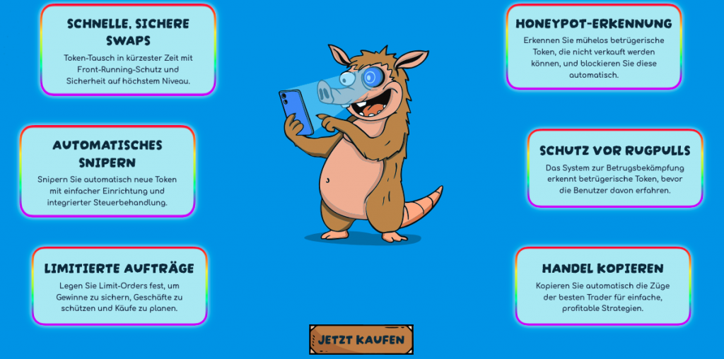 Die im Presale gekauften Coins können zudem auch für eine jährliche Rendite von bis zu 66 % gestakt werden. Bei SNORT handelt es sich erst einmal um einen recht klassischen Meme-Coin, der sehr auf eine wachsende Community und virales Momentum setzt. Abgesehen davon haben die Entwickler aber auch einen eigenen Telegram-Trading-Bot namens Snorter Bot angekündigt. Der soll das Meme-Projekt von der Masse anderer Projekte abheben und einen tatsächlichen Mehrwert für die Community schaffen.