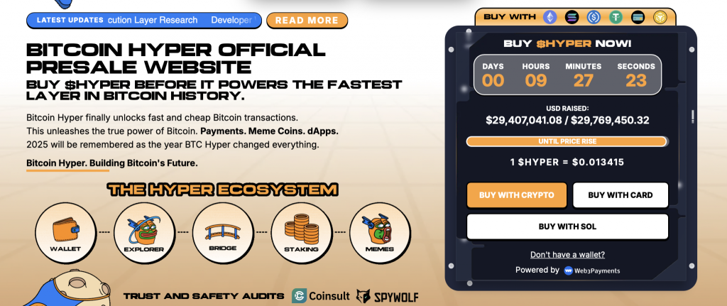 Im Zentrum des Ökosystems steht der $HYPER-Token, der für Governance, Staking, Transaktionsgebühren und Liquidität genutzt wird. Aktuell befindet sich der Token noch im Presale, in dem bereits fast 30 Millionen US-Dollar umgesetzt wurden. Für viele Anleger ergibt sich damit die Möglichkeit, frühzeitig in ein Projekt einzusteigen, das Bitcoin technologisch auf ein neues Niveau heben soll.