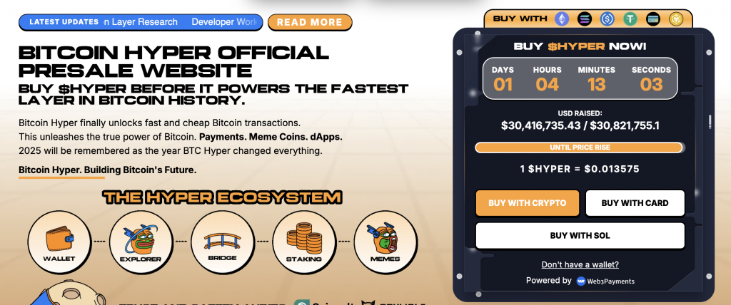 Der Presale hat bereits über 30 Millionen US-Dollar eingesammelt und zeigt starkes frühes Interesse. Der $HYPER-Token steht im Zentrum der neuen Hyper Chain und dient als funktionaler Baustein für Gebühren, Staking und Governance.