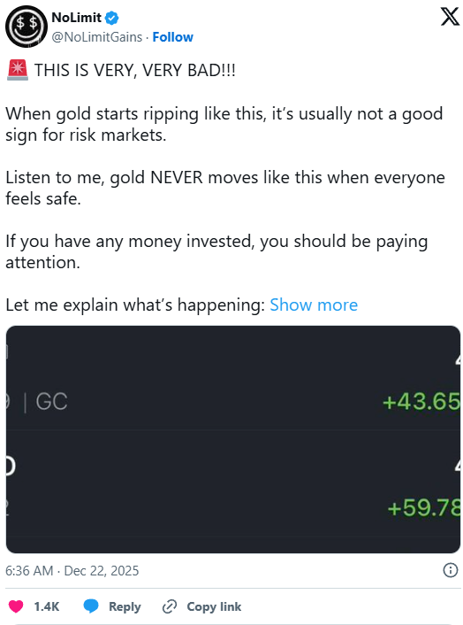 Der Goldpreis hat ein neues Allzeithoch erreicht und sorgt damit für zunehmende Nervosität an den Finanzmärkten. Während Gold auf neue Rekordstände steigt, mehren sich die Stimmen, die diese Bewegung als ernstzunehmendes Warnsignal für Risiko-Assets wie Aktien und Kryptowährungen interpretieren. Historisch betrachtet steigen Edelmetalle nicht dann stark an, wenn Anleger optimistisch sind und sich sicher fühlen, sondern genau in den Phasen, in denen Vertrauen schwindet.