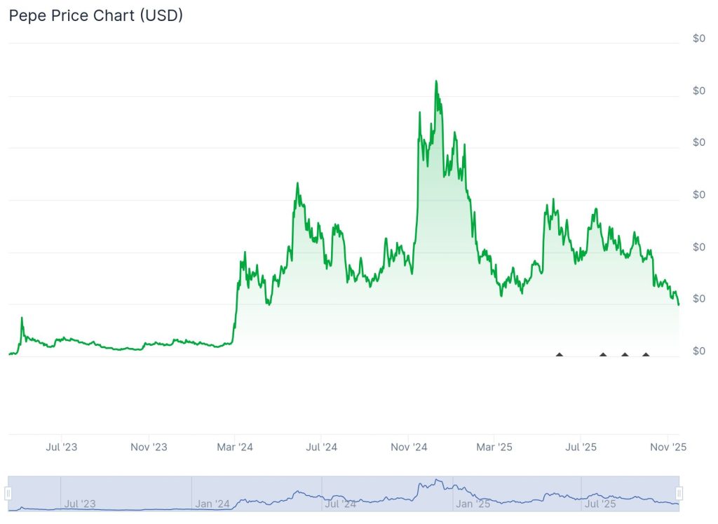 PEPE ist auf tiefsten Stand seit Anfang 2024 zurückgefallen