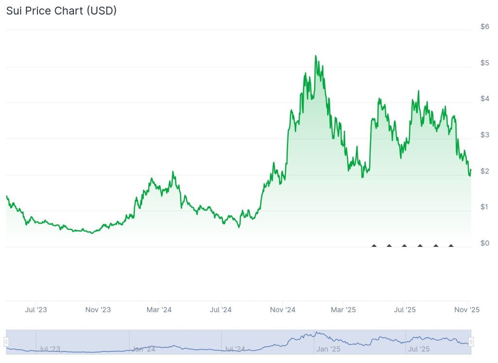 SUI ist auf Langzeitsupport bei 2 $ zurückgefallen