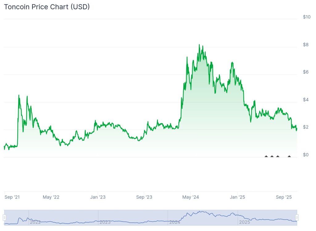 Auch bei TON könnte sich bei 2-$-Marke ein Bottom bilden